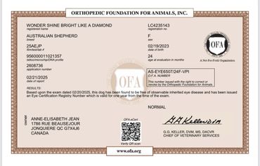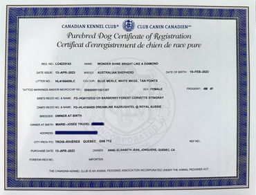 Avril est une petite chienne observatrice, fidèle et pleine de joie de vivre, il est littéralement impossible de lui résister, elle est beaucoup trop adorable et mignonne. Ne soyez pas surpris de la voir se dandiner les fesses et donner une tonne de bisou. Avril a une capacité d’apprentissage incroyable et souhaite que nous plaire. Bref, c’est une petite cocotte plus que parfaite. Nous prenons un grand plaisir à la voir évoluer au sein de notre élevage.