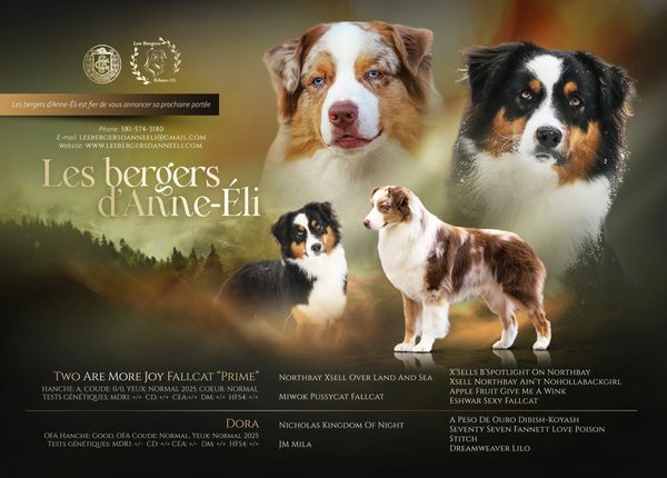 À noter, que l'élevage se garde le premier choix sur chaque portée pour un chiot qui conviendrait pour notre programme d'élevage.