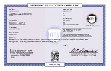 Dora a toutes les qualités requises pour devenir le chien de berger parfait. Elle est alerte, énergique et endurante, tout cela en étant également fidèle, protectrice, dévouée et sociable.